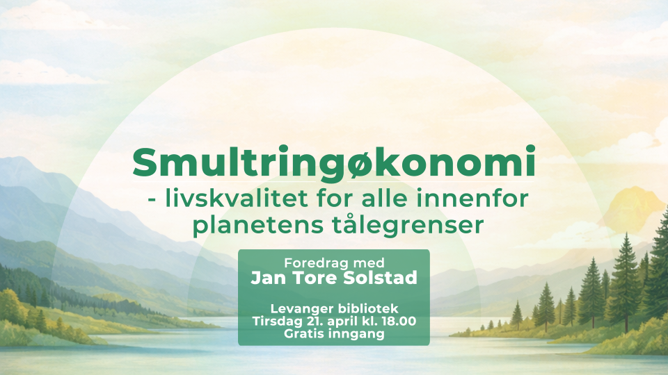 Foredrag om smultringøkonomi Smultringøkonomi - livskvalitet for alle innenfor plantens tålegrenser. Hvordan kan vi skape et samfunn som både mennesker og natur tåler?Tirsdag 21. ... Publisert 10.04.2026 kl. 11:11