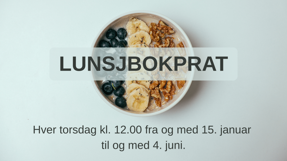 Lunsjbokprat starter 15. januar Torsdag 15. januar kl. 12.00 er det igjen tid for Lunsjbokprat. Publisert 07.01.2026 kl. 11:07