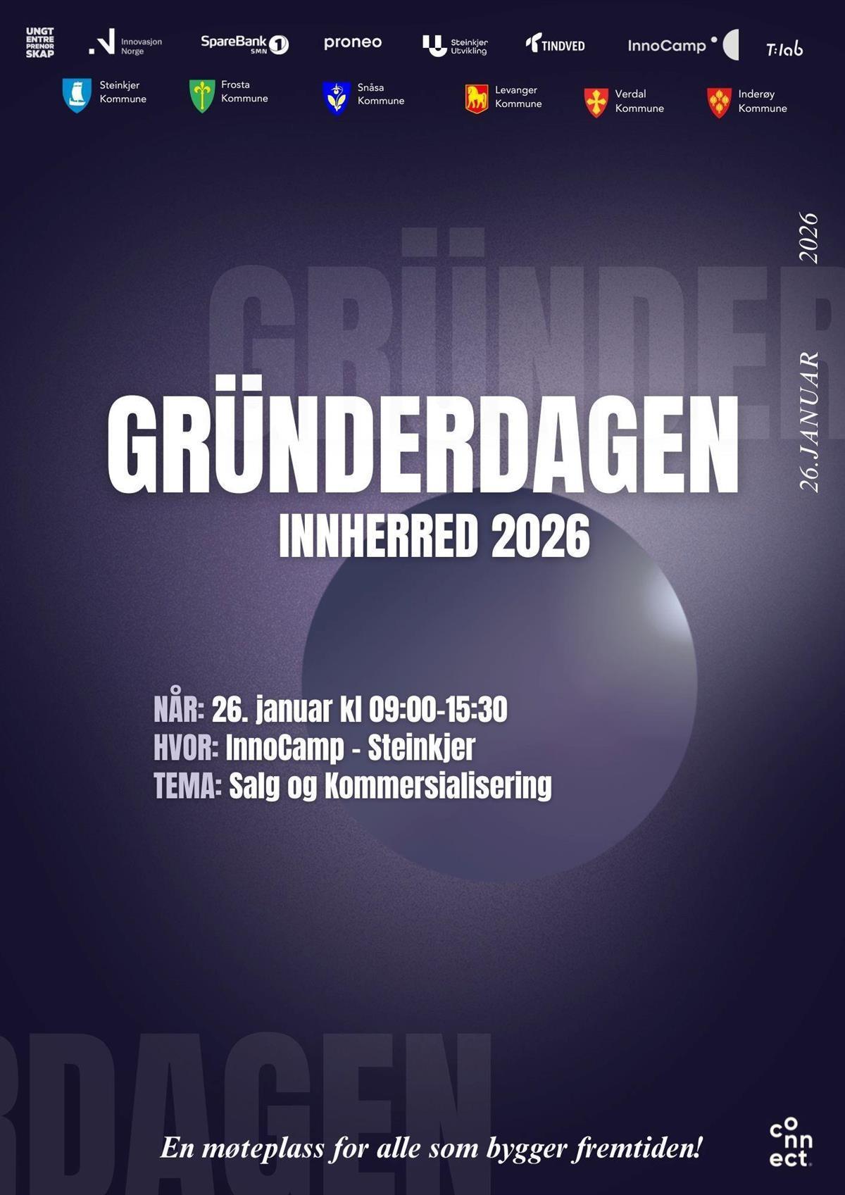 Grunderdagen er et samarbeid mellom Ungt Entreprenørskap, Innovasjon Norge, Sparebank1 SMN, Proneo, Steinkjer utvikling, Tindved, InnoCamp, Tlab, Connect Midt-Norge, Steinkjer kommune, Frosta kommune, Snåsa kommune, Levanger kommune, Verdal kommune og Inderøy kommune.